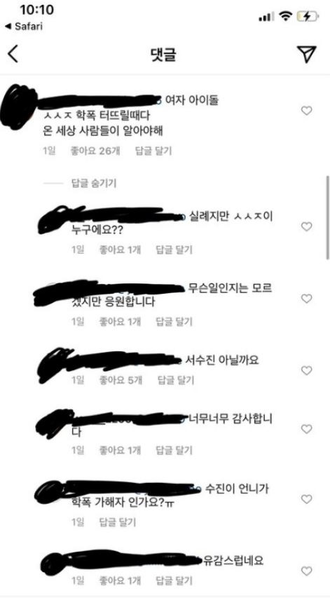 1 소속사에서 이 내용이 완전 소설을 쓴 게 아니라 당사자가 수진과 교류가 있었고, 다툼도 있었다는 것까지 인정했고 2, 이후 수진 본인이 방황했던 과거와 흡연 사실을 인정한 데다 3 요즘 여기 수진. 최근 현주 동생이 에이프릴 내 왕따사실을 폭로하면서 많은 추측들이 난무한 가운데 멤버 중 일부만 괴롭혔다는 오해가 있어서 글을 씁니다.